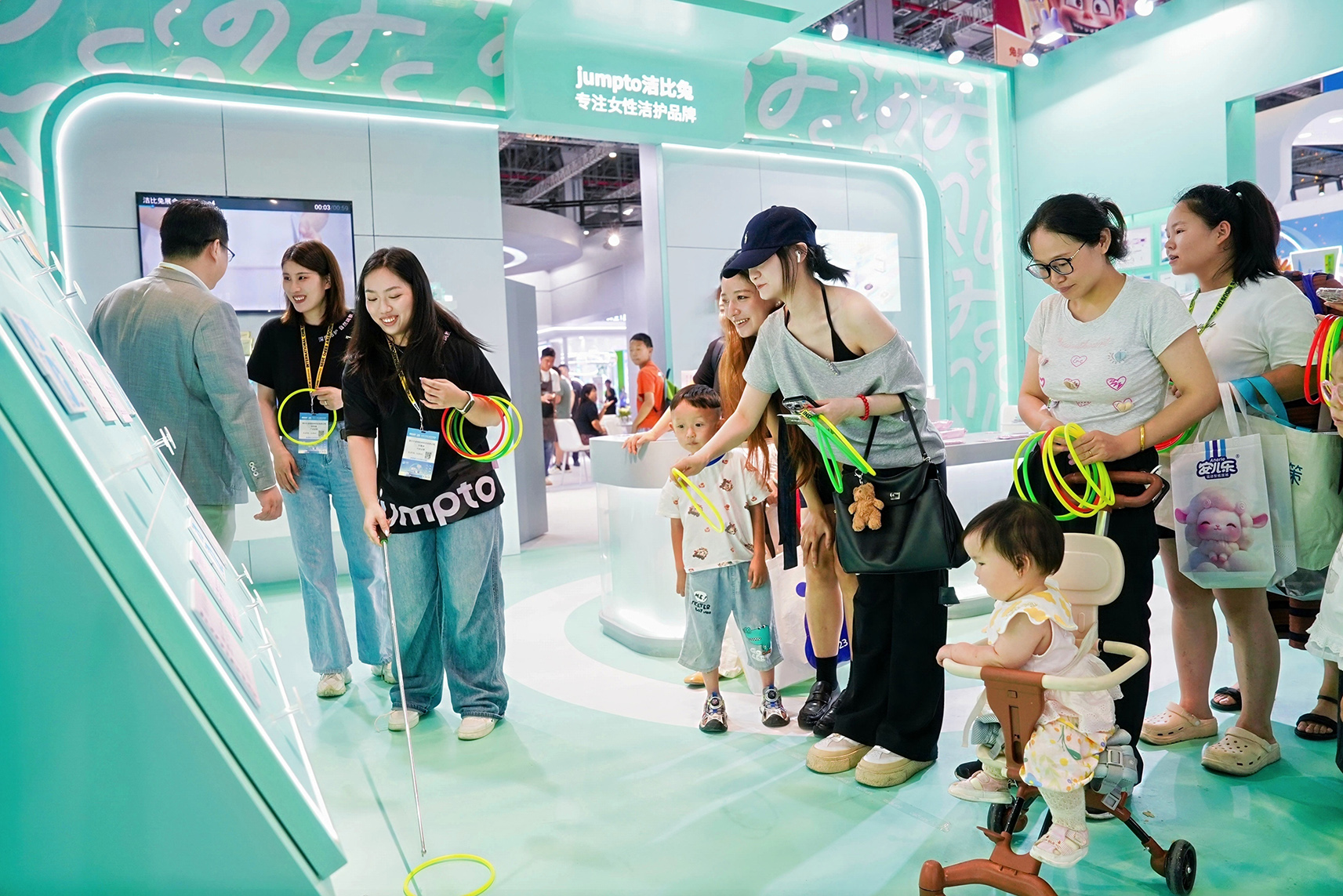 洞察到女性对私密护理的关注日益提升,洁比兔现场重点展示了以女性湿厕纸为代表的核心产品线。产品温和配方及创新搭配的单片独立包装,获得一致好评。
